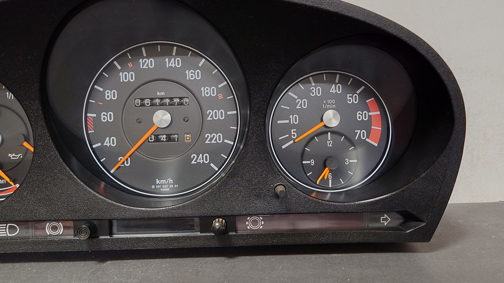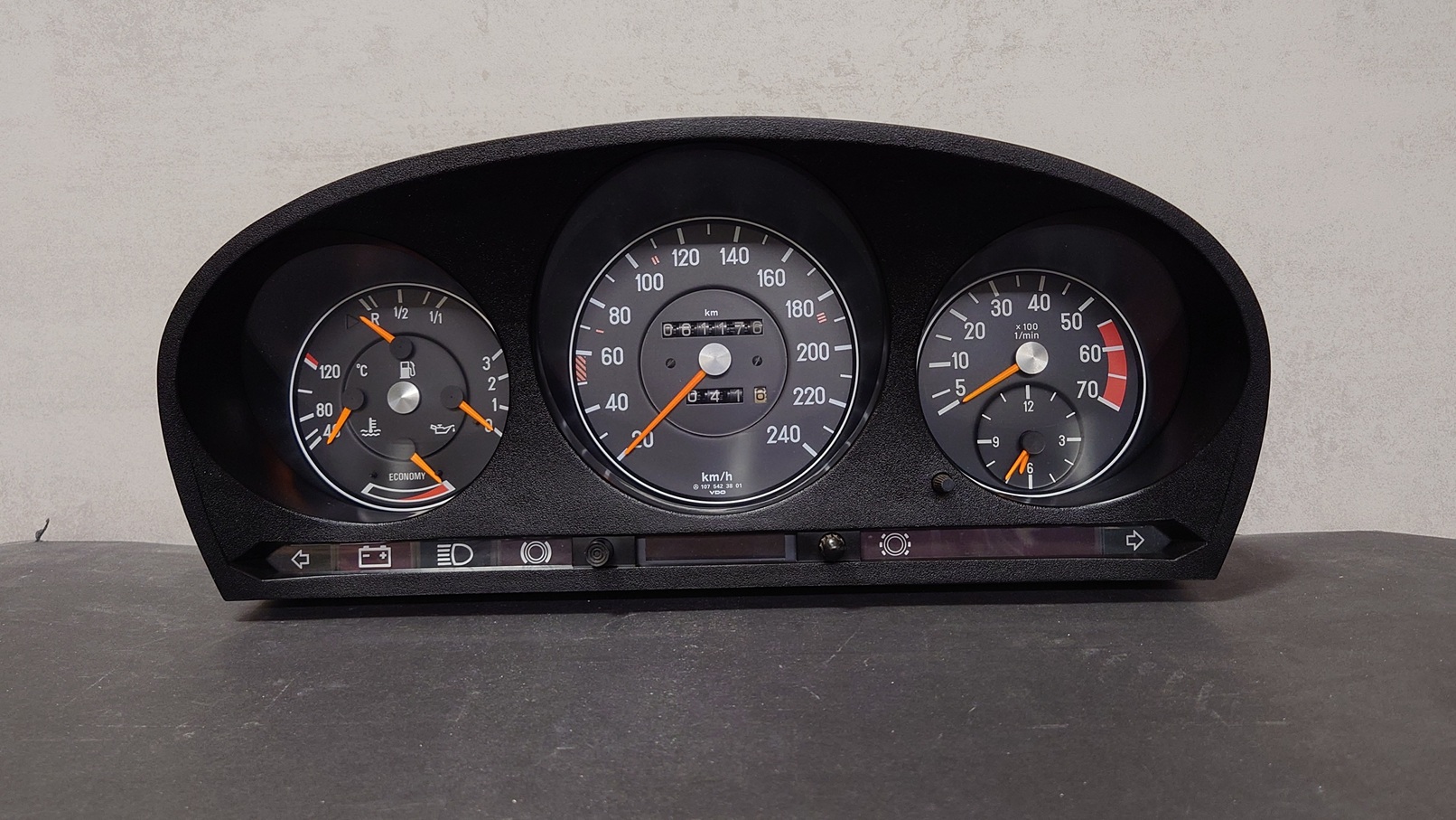 Ein aufbereitetes Kombiinstrument für einen 380SL R107 passend.